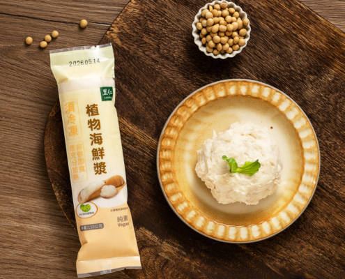 商品介紹採用非基改大豆、小麥蛋白等植物原料製作。以低添加物原則作為產品設計,開發出兼顧健康、美味的植物海鮮漿。口感鮮彈紮食,適合多種烹調方式。